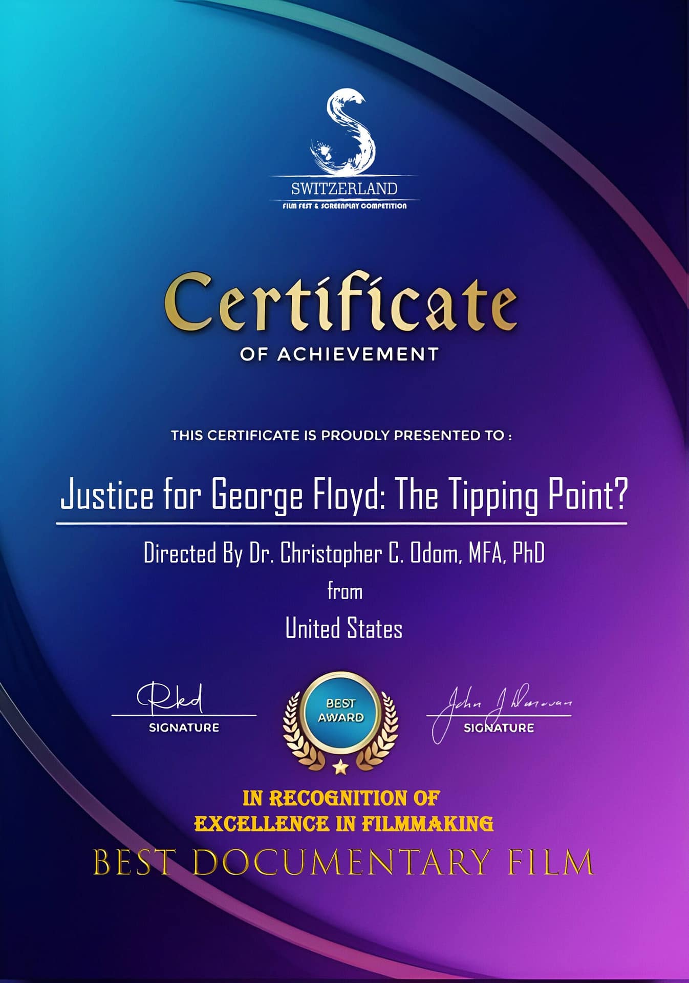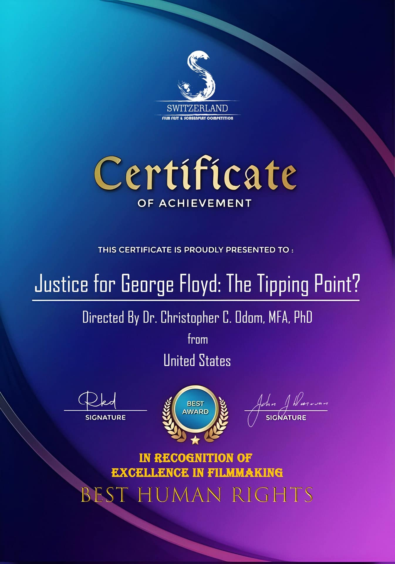 “Justice for George Floyd: The Tipping Point?” Wins Best Documentary Film and Best Human Rights Film at the Switzerland Film Fest & Screenplay Competition